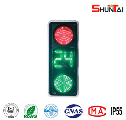 倒計時信號燈出光面直徑有300mm和400mm,光源采用進口超高亮度LED,具有壽命長、功耗低、外觀新穎、倒計時時間顯示完整等特點。