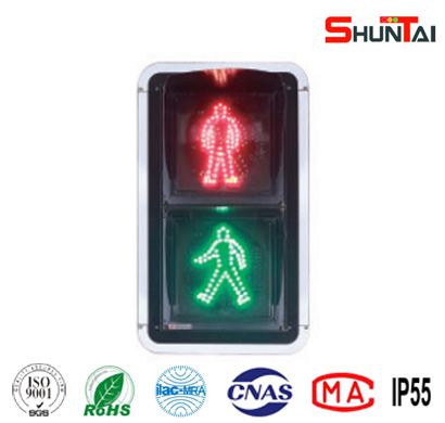 人行信號燈出光面直徑有300mm和400mm,光源采用進口超高亮度LED,具有壽命長、功耗低、外觀新穎等特點。